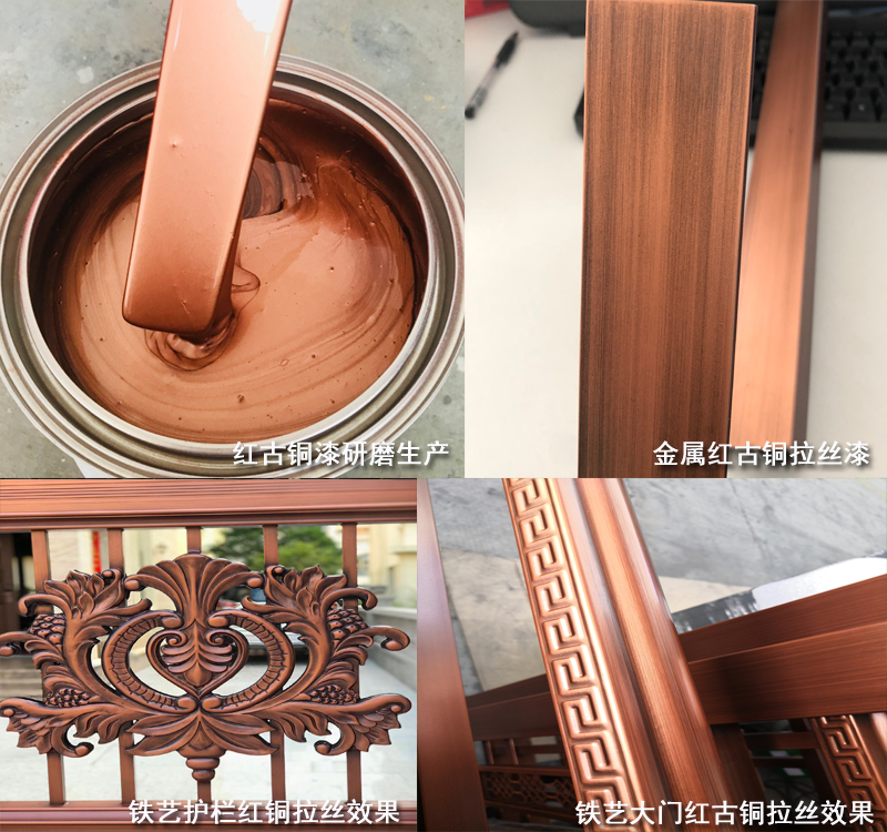 產(chǎn)品介紹:紅銅拉絲漆選取高耐候性丙烯酸樹脂和色粉原料及溶劑調(diào)配研磨,添加助劑而成。本品為雙組份油漆,加固化劑稀釋劑即可使用。施工簡易遮蓋力好,并且耐候性非常強,不褪色,不脫落,不起皮,龜裂,戶外持久壽命長。