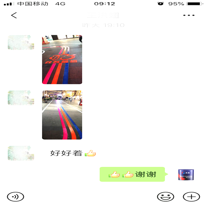 黃先生聽了立馬就下單了,同時還說用的好,后面還有幾個工程道路需要用到啦,還要把我們景馳特種油漆介紹給他朋友啦。相信及期待黃先生的再一次回購!您的肯定,就是對我們景馳特種油漆最好的回報!