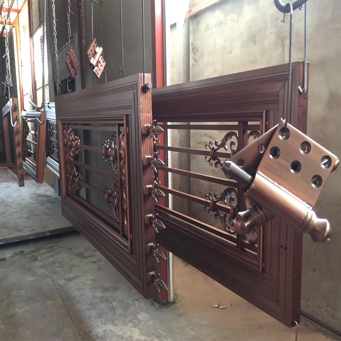 客戶案例——鐵藝大門紅古銅拉絲油漆施工現場